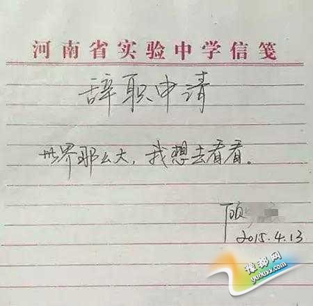 前段时间,一封辞职信在微博和朋友圈火了一把。这封辞职信只有10个字:世界那么大,我想去看看。辞职信不仅字体潇洒,字里行间流露出的任性和洒脱,也让网友们羡慕不已。