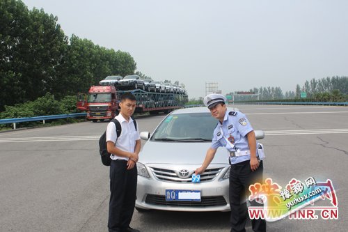 据商丘市公安局交警支队高速大队六中队中队长许新文介绍,8月22日上午9点30分许,他带领民警赵珅、石磊正在济广高速豫皖界收费站执勤,接大队指挥中心指令,要求拦截查处一辆车牌号为豫N28688的银色“吉利”轿车,通过卡口拦截系统发现,该车涉嫌超速,时速高达139KM,通过公安综合应用信息平台网查询,该车没有任何登记信息。五分钟后,执勤民警发现该车向济广高速豫皖界收费站驶来。民警迅速上前,予以拦截。