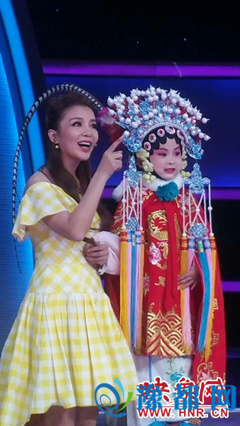 在《非常6+1》录制现场,小妙涵共演唱了三段豫剧经典唱段,均赢得了专家、嘉宾和观众的好评。有意思的是,著名主持人朱迅在舞台上还跟着妙涵学起了河南话。节目录完后,朱迅、关凌等嘉宾与妙涵亲切合影。