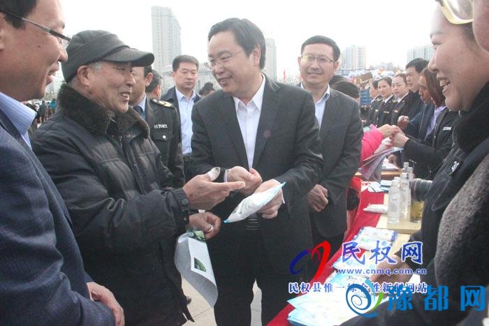 3月15日,县工商质监局组织县食药监局、烟草局、盐业局等11家职能部门、20多家企业单位共同庆祝2017年“3·15”国际消费者权益日。县委书记姬脉常,县委常委、常务副县长李启峰,县委常委、县委办公室主任孟亚松亲临现场指导,并与执法人员和人民群众交流互动。