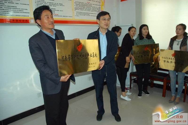 会议上,由省科技厅徐彬处长向宁陵县产业集聚区颁发“河南省高新技术特色产业基地”牌匾。由省科技厅徐彬处长、市科技局张建民局长、宁陵县政府县长马同和、省科技厅胡明昕科长向史丹利宁陵化肥有限公司、嘉施利(宁陵)化肥有限公司、福万家农业科技有限公司、丰四方复合肥有限公司颁发“河南省高新技术特色产业基地首批骨干企业”牌匾。
