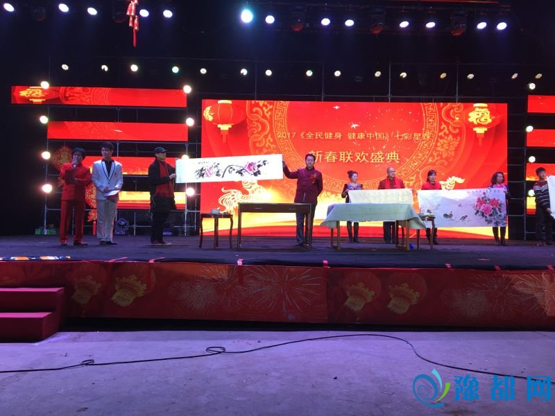 组委会领导夏斯兵、张万宏、卿光跃、陈愿兵、张彩珍、刘建军、夏士延、应晓阳、杜德利、康留国、梅丽琼、张政勤、梅丽琼等成员上台集体向全国人民拜年,演职人员和五位书画家上台接受颁奖。