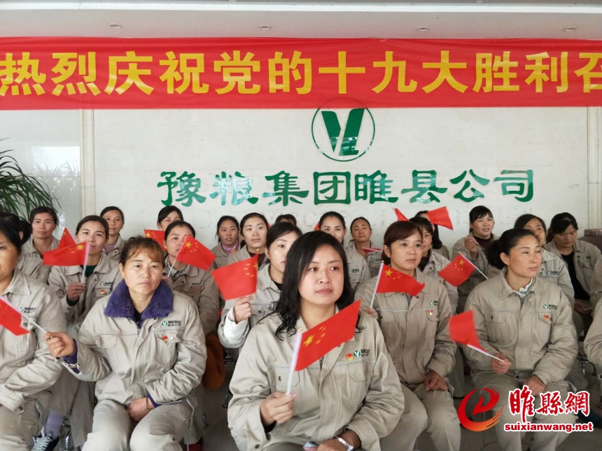 在豫粮集团睢县分公司会场上,国旗、党旗、庆祝横幅格外醒目,营造了浓厚的收看氛围。广大员工胸配党徽,手持国旗,早早的聚集在电视机前,上午九时,在庄严的国歌声中,中国共产党第十九次代表大会胜利开幕,大家聚精会神、认真聆听习总书记在开幕式上的报告,个个精神振奋、激情满怀,时而挥动手中的红旗,时而爆发出热烈的掌声,大家的心情久久不能平静。