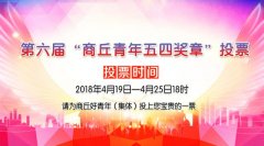 《商丘青年五四奖章开始投票,为睢县好青年投上一票》由河南新闻网-豫都网提供,转载请注明出处:http://shangqiu.yuduxx.com/suixian/732813.html,谢谢合作!