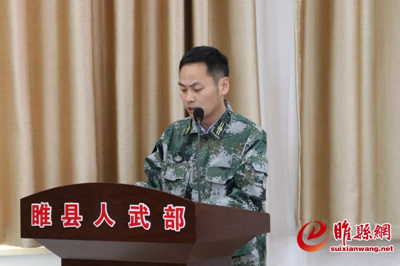 大会在雄壮的《中国人民解放军军歌》中拉开序幕,来自全县民兵应急连120名基干民兵统一着装,精神抖擞,以饱满的热情、昂扬的斗志接受点验。会上,新入队民兵代表上台发言,全体民兵进行了宣誓,贾发生作了重要讲话并为此次集中轮训提出了要求。