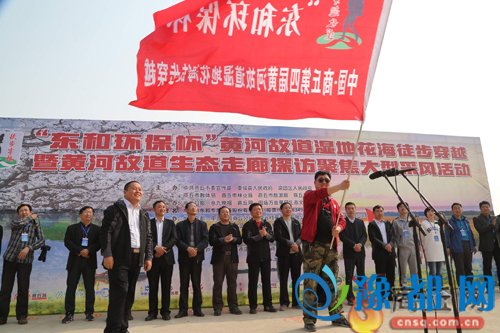 4月2日,“东和环保杯”中国·商丘第四届黄河故道湿地花海徒步穿越暨黄河故道生态走廊探访聚焦开镜仪式在虞城县田庙乡万亩果园隆重举行。随着市委宣传部常务副部长刘玉杰宣布徒步穿越活动启动,1300多名户外运动爱好者投入了历时两天的湿地花海穿越之旅。