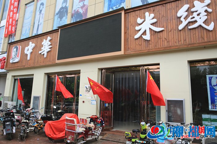“挂上国旗,特喜庆,生意也好。”国庆节挂国旗已经成为了很多市民的习惯。人民路中华米线的店长范波正将国旗悬挂在店面前,反复调整了几次才觉得满意。他告诉记者,他每年都挂国旗,既表达了对祖国生日的祝福,又烘托了节日气氛吸引顾客。(摄影报道 张晋华)