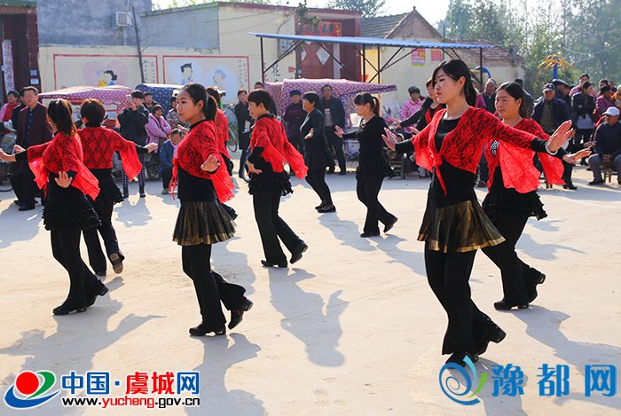 11月1日上午,在城郊乡花庄村文化广场上,村民自发组成的广场舞队正在为村民们表演。被村民推举为“当代雷锋”的花庄村村民杨朝领站在舞台一旁,等待村里即将举行颁奖大会。