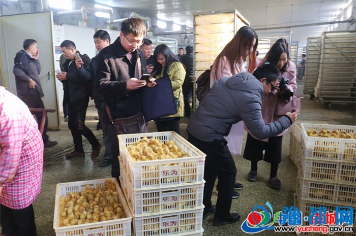 在乐为牧业公司,记者们参观了公司现代化鸭苗孵化车间和肉鸭屠宰车间,纷纷用手中的照相机、摄影机和手机捕捉精彩的画面。