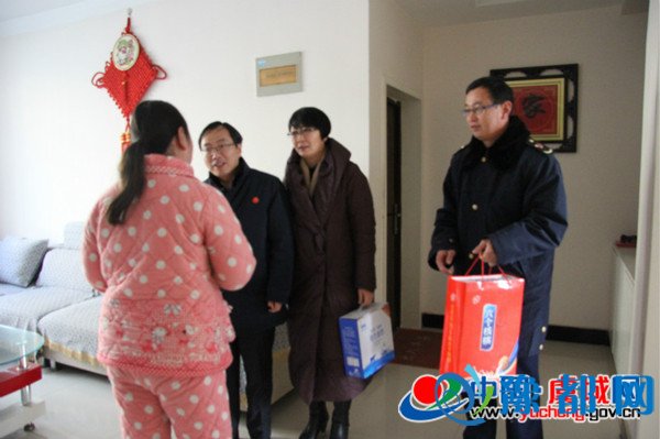 虞城网讯 春节来临之际,1月22日上午,县委常委、副县长程惠建代表县委县政府与县工商和质量技术监督局局长赵凤英等人来到工商局困难职工张永丽家中进行慰问,并送去了慰问品和慰问金。