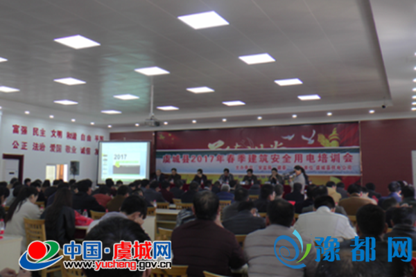 虞城网讯 (通讯员 孙宏涛)3月7日,在虞城县供电公司5楼会议室,虞城县住建局、安监局、供电公司联合组织召开全县2017年春季建筑安全用电培训会,邀请省安全生产高级讲师、注册安全工程师李修银为大家授课,住建局、安监局、供电公司主管领导、各相关职能科室工作人员及全县在建建筑工地专业技术人员共计100余人参加了会议,对建筑施工安全用电方面的技术规范等专业知识进行了集中学习。