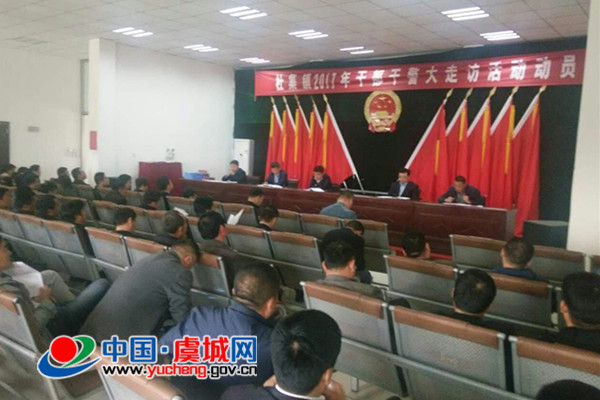 虞城网讯 4月12日,杜集镇召开2017年干部干警大走访活动动员会,镇干部全体、村组干部全体、镇直部门负责人、派出所全体干警参加会议。镇综治委主任户守党传达市县综合治理平安建设有关会议文件精神和《杜集镇2017年干部干警大走访活动实施意见》,并就全镇干部干警大走访活动工作进行了安排部署。会议由乡党委书记张如意主持并做重要讲话。