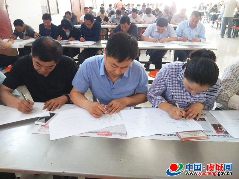虞城网讯 为进一步提高黄冢乡全体驻村队员的业务素质,夯实帮扶责任人的专业知识水平,5月17日上午9:00,黄冢乡组织全体班子成员、全体驻村队员以及各村支部书记在黄冢乡初级中学举行扶贫知识测试,比赛以答题考试形式进行。